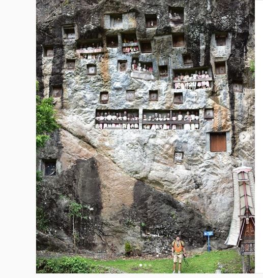 "Di daerah kalian ada tradisi unik apa? Di Toraja, mereka memiliki cara yang istimewa dan unik dalam menunjukkan penghormatan terakhir untuk orang-orang tercintanya, seperti suku Toraja yang tinggal di utara Makale, Sulawesi Selatan, memercayai bila letaknya makam lebih tinggi maka semakin dekat dengan Tuhan. Oleh sebab itulah, mereka membangun makam di atas tebing batu yang dikenal dengan nama Makam Batu Lemo. Objek wisata Lemo yang berlokasi di Tana Toraja terkenal sebagai rumah para arwah. Lokasi Lemo sendiri tidak jauh dari Kota Makale. Di tempat ini, kita bisa melihat jenazah yang disimpan di ruang terbuka tepatnya berada di dinding bukit yang curam. Tempat makam ini merupakaan perpaduan antara kematian, seni dan ritual. Di beberapa lubang makam terdapat patung-patung pahat berbentuk manusia utuh. Patung-patung pahat ini dinamakan Tao-tao yang dibuat sebagai simbol atau gambaran orang-orang yang berada di lubang tersebut. Selain Lemo, kita juga dapat mengunjungi objek wisata lainnya yang berlokasi tidak jauh dari objek wisata Lemo," tulis Instagram @Pesonaid_Travel, dikutip Kamis (15/11/2018).