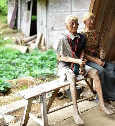 Di objek wisata Lemo, puluhan tau-tau (patung replika dari yang meninggal) tersusun rapi di depan liang.