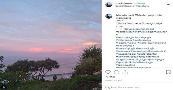"Sunrise dipuncak pantai watunene Begitu indah. Pantai yang masih begitu sepi. Pantai watunene, Tepus,Gunungkidul,YK," tulis Instagram @blackdannett, Senin (10/6/2019).