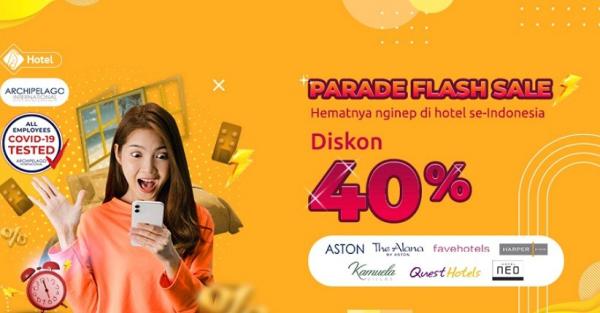 Staycation di hari kerja bukan berarti diskonnya tidak ada. Mister Aladin bekerja sama dengan grup hotel Archipelago International mengadakan Parade Flash Sale. Anda bisa menginap di hotel-hotel yang tergabung dalam grup Archipelago dengan diskon 40%, di antaranya ada hotel ASTON, NEO HOTEL, favehotels, HARPER, Quest Hotels, The Alana, dan Kamuela Villas.