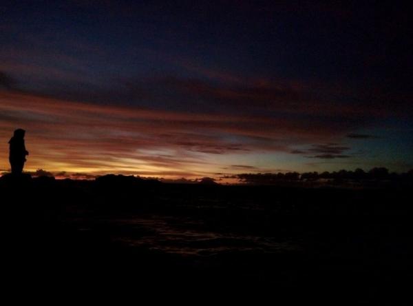 Tina sempat ragu dapat melihat sunset, sebab pukul 18.00 WIB, dirinya masih dalam perjalanan. Dia sengaja berhenti di pantai terdekat untuk dapat menikmati sunset.