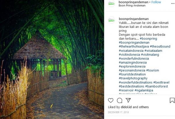 "Yukkk, buruan ke sini dan nikmati liburan kalian di wisata alam boon pring. Dengan spot-spot foto berbeda dan terbaru. #boonpring," tulis Instagram @boonpringandeman, dikutip Kamis (23/1/2020).