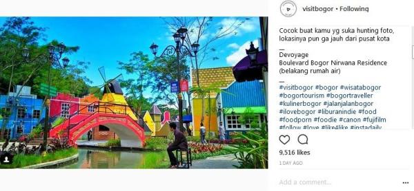 "Destinasi yang lagi hits banget di Kota Bogor ini namanya Devoyage. Menawarkan kamu spot-spot berfoto ala-ala di landmark Eropa. Cocok buat kamu yang suka hunting foto, lokasinya pun gak jauh dari pusat kota," tulisnnya, seperti dikutip iNews.id, Senin (2/4/2018).
