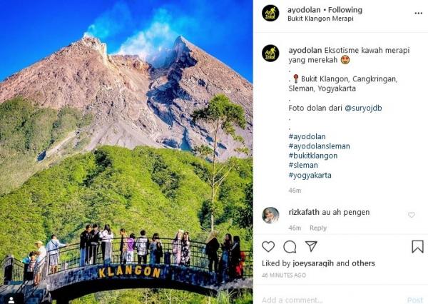 "Eksotisme kawah merapi yang merekah. Bukit Klangon, Cangkringan, Sleman, Yogyakarta. Foto dolan dari @suryojdb," tulis Instagram @ayodolan, dikutip Rabu (5/2/2020).