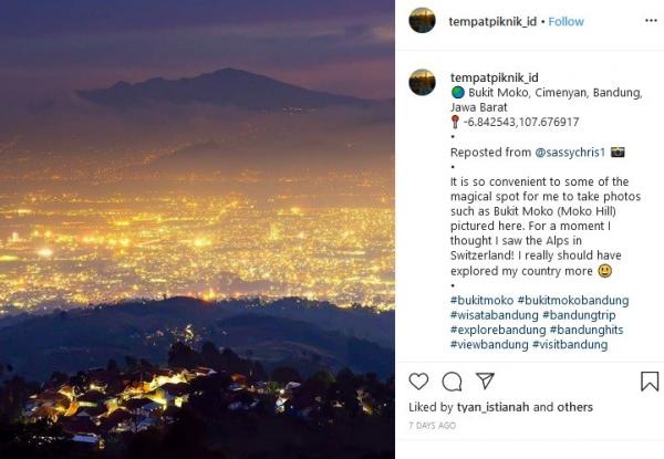 "It is so convenient to some of the magical spot for me to take photos such as Bukit Moko (Moko Hill) pictured here. For a moment I thought I saw the Alps in Switzerland! I really should have explored my country more," tulis Instagram @tempatpiknik_id, dikutip Jumat (6/3/2020).