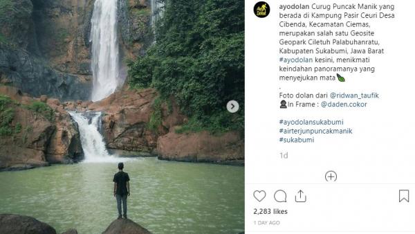 "Curug Puncak Manik yang berada di Kampung Pasir Ceuri Desa Cibenda, Kecamatan Ciemas merupakan salah satu Geosite Geopark Ciletuh Pelabuhanratu, Kabupaten Sukabumi, Jawa Barat. Ayo dolan ke sini, menikmati keindahan panoramanya yang menyejukan mata," tulis Instagram @ayodolan, Selasa (25/6/2019).