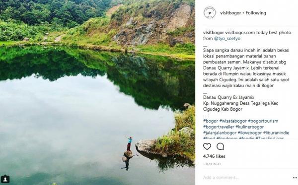 Melalui postingan di Instagram, Tyo menulis caption, "Siapa sangka danau indah ini adalah bekas lokasi penambangan material bahan pembuatan semen. Makanya disebut sebagai Danau Quarry Jayamix. Lebih terkenal berada di Rumpin walau lokasinya masuk wilayah Cigudeg. Ini adalah salah satu spot destinasi wajib kalau main di Bogor," tulisnya, seperti dikutip iNews.id, Sabtu (13/1/2018).