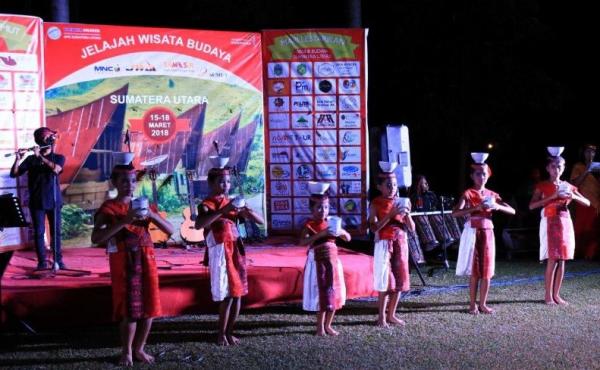 Bupati Samosir, Rapidin Simbolon pun turut menghadiri acara Jelajah Wisata Budaya Sumatera Utara kali ini. Para peserta tampak dihibur dengan budaya khas setempat, seperti tari Tortor Siburut.