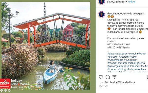 "Holla voyageurs. Mengelilingi mini Eropanya devoyage sambil bermain canoe tentunya menyenangkan bukan? Nah jangan tinggalkan moment indah kamu di Devoyage ya," tulis Instagram @devoyagebogor, dikutip Kamis (6/2/2020).