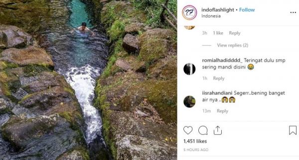 "Mata air ini masih terbilang tersembunyi. Pemandangan alamnya indah dengan pepohonan rindang, ditambah airnya yang sangat jernih. Cocok buat mandi di siang hari untuk menikmati kesegaran haqiqi yang tiada duanya," tulis Instagram @Indoflashlight, Jumat (16/5/2019).