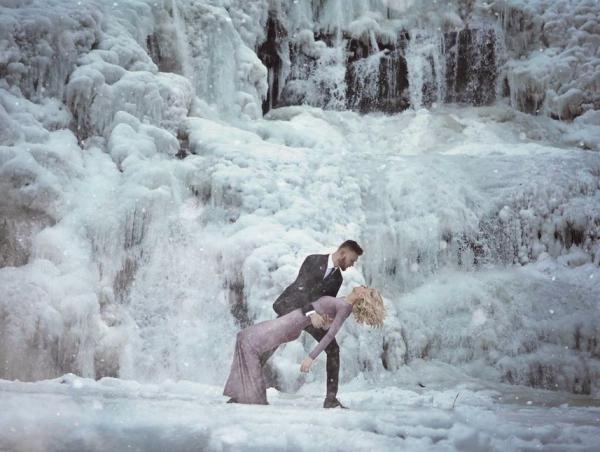 Musim dingin tidak menghentikan Morgan Daye dan Josh Morris mengambil foto pertunangan paling ajaib di air terjun beku raksasa. Pasangan ini rela menghadapi cuaca dingin 25 derajat celsius.