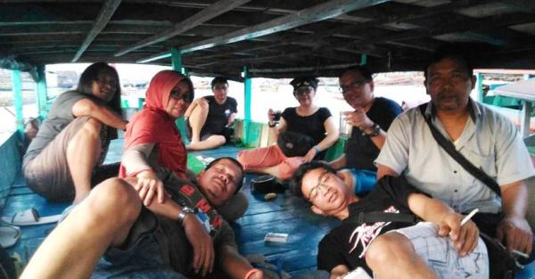 "Tunggu aja sebentar lagi juga datang. Sudah mulai terang ini ..." kata nahkoda kapal klotok kami.