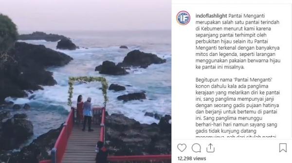 "Pantai Menganti merupakan salah satu pantai terindah di Kebumen. Sepanjang pantai, terhimpit oleh perbukitan hijau. Selain itu, Pantai Menganti terkenal dengan banyaknya mitos dan legenda, seperti larangan menggunakan pakaian berwarna hijau ke pantai ini misalnya," tulis Instagram @Indoflashlight, dikutip Jumat (13/9/2019).
