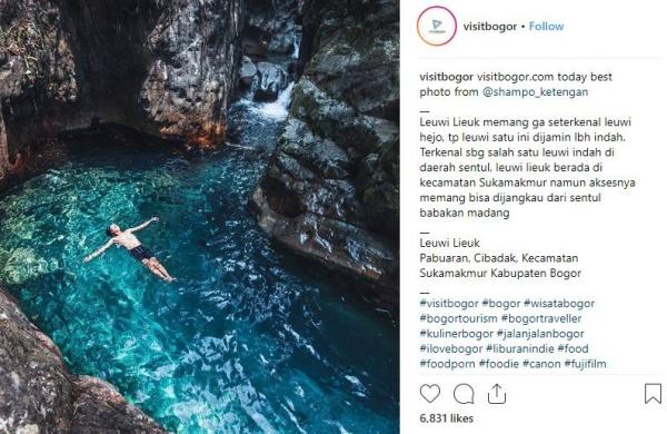 "Leuwi Lieuk memang gak seterkenal Leuwi Hejo, tapi Leuwi satu ini dijamin lebih indah. Terkenal sebagai salah satu Leuwi indah di daerah Sentul, Leuwi Lieuk berada di kecamatan Sukamakmur namun aksesnya memang bisa dijangkau dari Sentul Babakan Madang," demikian tulis Instagram @VisitBogor, Senin (3/8/2018).