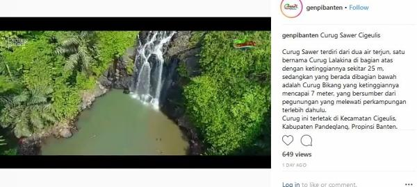 "Curug Sawer terdiri dari dua air terjun, satu bernama Curug Lalakina di bagian atas dengan ketinggiannya sekitar 25 m, sedangkan yang berada di bagian bawah adalah Curug Bikang yang ketinggiannya mencapai 7 meter. Airnya bersumber dari pegunungan yang melewati perkampungan terlebih dahulu. Curug ini terletak di Kecamatan Cigeulis, Kabupaten Pandeglang, Provinsi Banten," tulis Instagram @GenpiBanten, dikutip Jumat (13/7/2018).