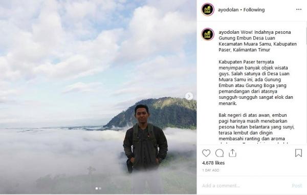 "Wow! Indahnya pesona Gunung Embun Desa Luan, Kecamatan Muara Samu, Kabupaten Paser, Kalimantan Timur. Oke guys, yang mau berangkat ke sini, hati-hati. Jaga selalu kebersihan tempat ini. Selamat berpetualang. Salam hijau, salam lestari. Foto dolan dari @skmasgiarto5_" tulis Instagram @ayodolan dikutip Jumat (12/7/2019).