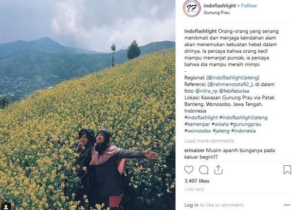 "Orang-orang yang senang menikmati dan menjaga keindahan alam akan menemukan kekuatan hebat dalam dirinya. Ia percaya bahwa orang kecil mampu memanjat puncak, ia percaya bahwa dia mampu meraih mimpi," tulis Instagram @indoflashlight, dikutip Kamis (4/10/2018).