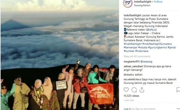 "Lautan Awan di area gunung tertinggi se-Pulau Sumatera dengan latar belakang Piramida 3805. Megah memang Gunung Indonesia!," tulis Instagram @indoflashlight, dikutip Jumat (28/9/2018).