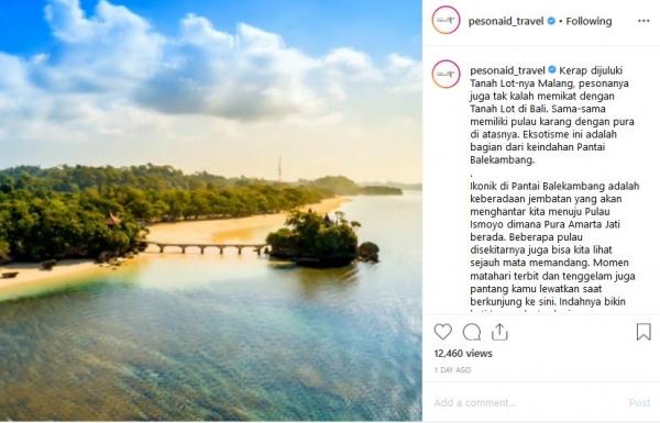 "Cantiknya lautan biru dan pasir putih menjadi sambutan pertama yang menyapa kita di Pantai Balekambang. Bahkan, sebelum sampai ke pantai ini, kita sudah disuguhkan pemandangan hijau di sepanjang jalan. Mau seru-seruan? Di Pantai Balekambang bisa berkemah juga lho!" tulis Instagram @Pesonaid_travel, dikutip Jumat (8/8/2019).