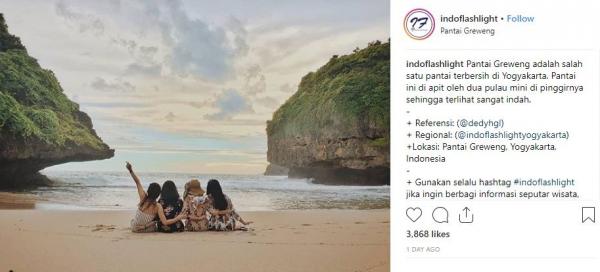 "Pantai Greweng adalah salah satu pantai terbersih di Yogyakarta. Pantai ini diapit oleh dua pulau mini di pinggirnya sehingga terlihat sangat indah," tulis Instagram @Indoflashlight, Rabu (5/12/2018).