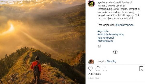 "Menikmati Sunrise di Wisata Gunung Kendil, Temanggung, Jawa Tengah. Tempat ini memiliki pesona keindahan yang sangat menarik untuk dikunjungi. Yuk tag dan ajak teman kamu ksini! Foto dolan dari @lilisnurrohman," tulis Instagram @Ayodolan, Rabu (3/7/2019).