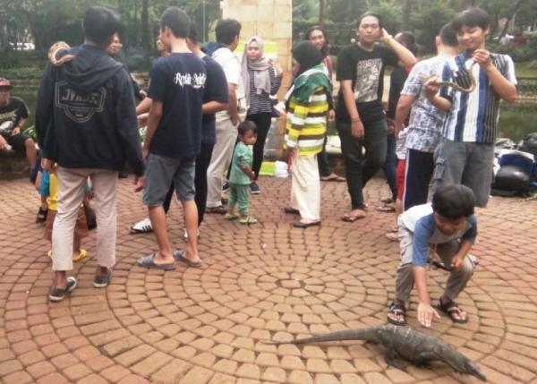 Saat sore hari, Anda dapat berjalan-jalan sambil melihat banyak reptil. Pasalnya, ada Komunitas Warteg Reptil Jakarta (WRJ) di taman ini.