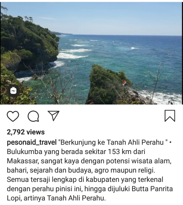 "Nah, mau lihat pesona Bulukumba yang selalu memikat traveler? Tonton video ini sampai habis, dan sempatkan mampir ke Festival Pinisi 2019, ya!" tulis Instagram @pesonaid_travel, dikutip Minggu (15/9/2019).