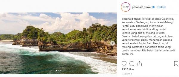 "Terletak di Desa Gajahrejo, Kecamatan Gedangan, Kabupaten Malang, Pantai Batu Bengkung menyimpan keunikan tersendiri dibanding pantai lainnya yang ada di Malang Selatan. Deretan batu karang dan cekungan kolam yang terbentuk alami, menambah pesona keunikan dari Pantai Batu Bengkung di Malang. Ditambah panorama senja yang cantik membuat kita betah berlama-lama di pantai ini," tulis Instagram @Pesonaid_Travel, Rabu (23/1/2019).