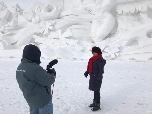 (Jurnalis iNews.id mengambil gambar pahatan salju terbesar di dunia)