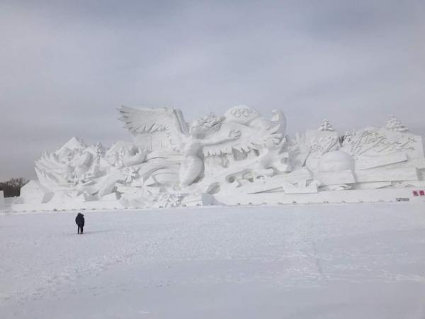Perjalanan kami selanjutnya ke area festival internasional pahatan salju terbesar di dunia. Di sini berbagai pahatan salju hasil karya pemahat dari sejumlah negara ditampilkan.