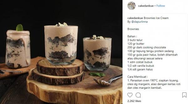 Brownies cokelat dengan es krim milo. (Foto: Instagram)