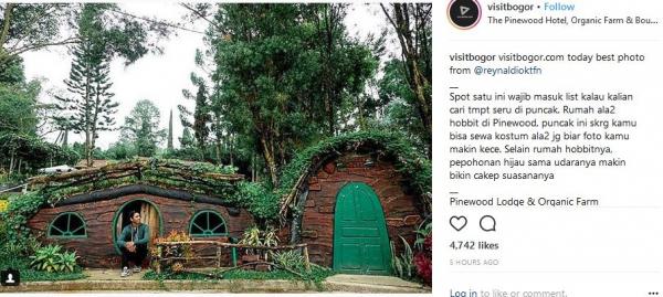 "Spot satu ini wajib masuk list kalau kalian cari tempat seru di puncak. Rumah ala-ala Hobbit di Pinewood di puncak. Sekarang kamu bisa sewa kostum ala-ala juga biar foto makin kece. Selain rumah Hobbitnya, pepohonan hijau sama udaranya makin bikin cakep suasananya," tulis Instagram @reynaldioktfn dikutip Rabu (13/6/2018).