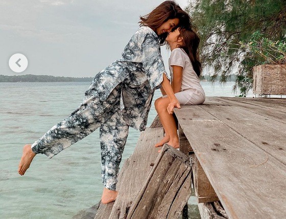 Masih di Pulau Macan, ibu dan anak ini kembali memamerkan pose menggemaskan ala mereka berdua. Mengambil spot di tepi pantai, Gisel dan Gempi berpose di dermaga mini.