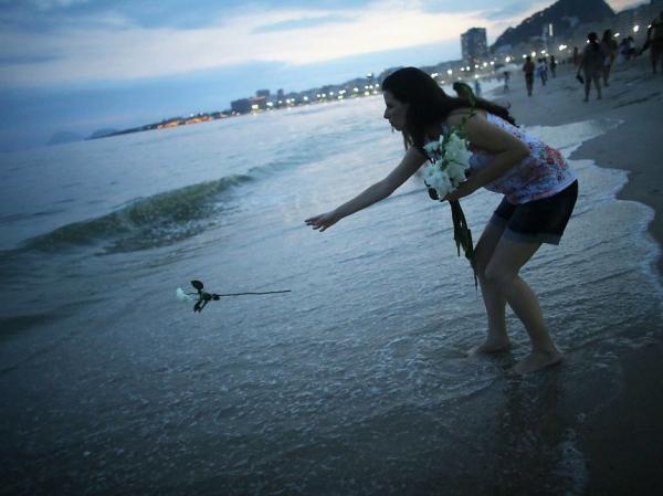 Tradisi lainnya pada pergantian Tahun Baru di Brazil adalah melempar bunga putih ke laut. Tradisi ini dipercaya sebagai persembahan kepada Dewi Laut. Banyak penduduk setempat percaya dengan tradisi ini, yaitu mengenakan dan melempar bunga putih serta lilin ke laut, pada tengah malam tepat pergantian tahun. Ini merupakan persembahan kepada Iemanja, Dewi Laut Afro - Brazilian Goddess of the Sea.