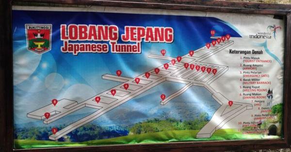 “Total panjang Lobang Jepang ini 1,47 kilometer dan di dalamnya banyak lorong. Tidak ada sinyal handphone karena lubang ini kedalamannya 40 meter di bawah permukaan tanah,” ujar Jhon kepada kami, rombongan wartawan dari Jakarta, yang berkunjung ke Lobang Jepang, Bukittinggi, Sumatera Barat, baru-baru ini.