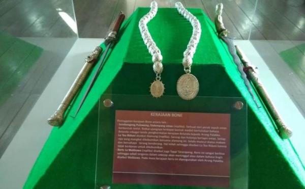 Kemudian masih banyak koleksi-koleksi yang dipamerkan di ruang pamer lain di Museum La Galigo. Misalnya peninggalan dari Kerajaan Bone, yaitu replika Sembangeng Pulaweng yang artinya selempang emas. Selempang emas ini terbuat dari perak sepuh emas berbentuk rantai. Kedua ujungnya terdapat bentuk medali bertuliskan bahasa Belanda sebagai tanda penghormatan kerajaan Belanda kepada Arung Palakka.