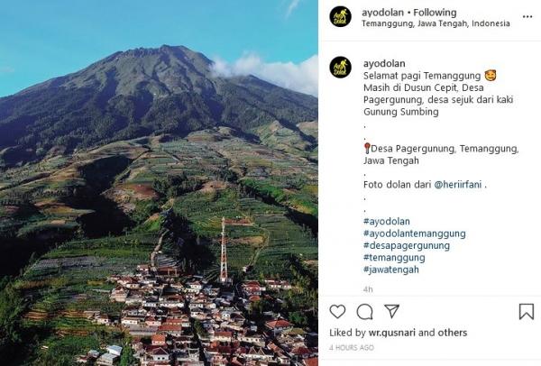 "Selamat pagi Temanggung. Masih di Dusun Cepit, Desa Pagergunung, desa sejuk dari kaki Gunung Sumbing. Desa Pagergunung, Temanggung, Jawa Tengah. Foto dolan dari @heriirfani," tulis Instagram @ayodolan, dikutip Rabu (11/3/2020).