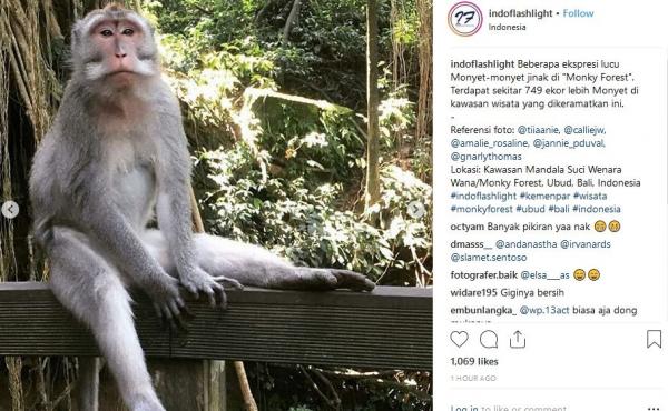 Bahkan, tidak sedikit dari kera-kera ini bertinggah menggemaskan dan lucu. Ekspresi lucu kera-kera ini dapat dilihat melalui instagram @indoflashlight.