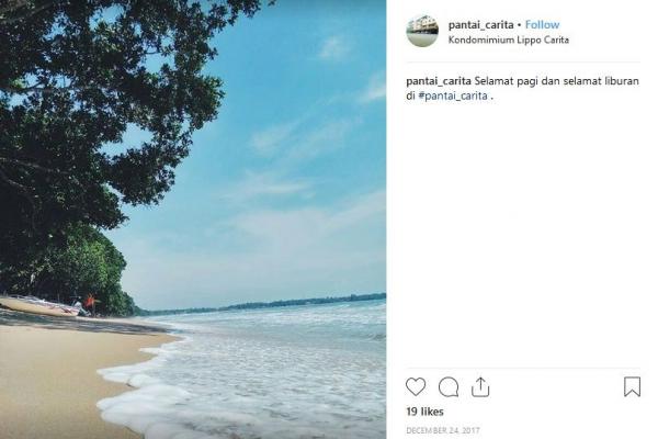 Pantai Carita menyuguhkan keindahan alam yang mampu mengikat hati. Pantai ini juga memiliki udara yang sejuk. Salah satu daya tarik pantai yang berada di Kecamatan Carita, Kabupaten Pandeglang, Banten ini adalah panorama matahari tenggelam di waktu senja dengan karakteristik air laut yang tenang membayangi. Suasana malam di kawasan pantai ini sangat eksotis dan romantis.
