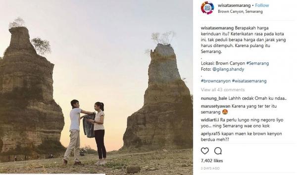 Salah satu kawasan wisata menarik di Semarang yang harus dikunjungi traveler adalah Brown Canyon. Tempat ini sangat populer di kalangan traveler. Brown Canyon bukanlah tempat wisata buatan. Kawasan ini terbentuk akibat proses alam dan juga proses galian yang dilakukan oleh penambang di sekitar Semarang selama lebih dari 10 tahun.
