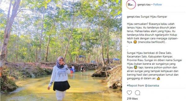 "Hijau semuakan? Biasanya kalau sudah lampu hijau, itu tandanya disuruh jalan terus. Hahaa, kalau alam yang hijau, itu tandanya kita disuruh melanjutkan hidup lebih baik dengan cara menjaga ciptaan-Nya," tulis Instagram @genpiRiau, dikutip Kamis (12/7/2018).