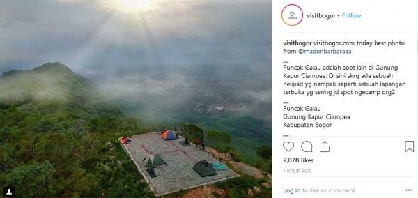 "Puncak Galau adalah spot lain di Gunung Kapur Ciampea. Di sini sekarang ada sebuah helipad yang tampak seperti lapangan terbuka, sering jadi spot ngecamp orang," tulis Instagram @Visit_Bogor, dikutip Selasa (4/12/2018).