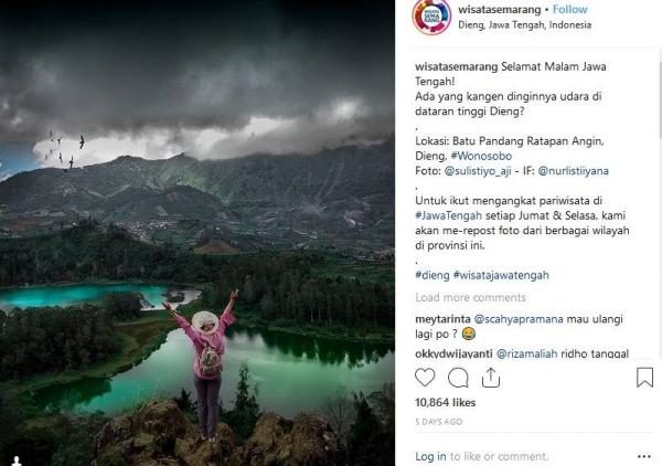 "Ada yang kangen dinginnya udara di dataran tinggi Dieng? Lokasi: Batu Pandang Ratapan Angin, Dieng, #Wonosobo," tulis Instagram @wisataSemarang dikutip Kamis (25/10/2018).