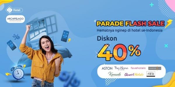 Menikmati beragam fasilitas dan pelayanan dari hotel bintang empat ini, Anda tak perlu khawatir soal biaya menginap. Mister Aladin bekerja sama dengan grup hotel Archipelago International mengadakan Parade Flash Sale untuk menginap di hotel-hotel yang tergabung dalam grup. Mulai dari ASTON, NEO Hotels, favehotels, HARPER, Quest Hotels, The Alana, hingga Kamuela Villas bisa Anda nikmati dengan potongan harga 40 persen.