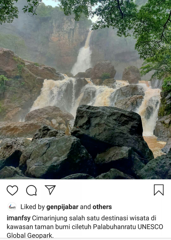 "Cimarinjung salah satu destinasi wisata di kawasan taman bumi Ciletuh Pelabuhanratu UNESCO Global Geopark. Sabtu kemarin, berkesempatan untuk ke sana lagi. Destinasi ini aksesnya sangat baik jalan menuju curug dari parkiran sudah nyaman. Nah moment saat ini sangat tepat berkunjung kesana. Karena debit airnya pasti besar apalagi usai hujan," tulis Instagram @imanfsy, dikutip Sabtu (7/3/2020).
