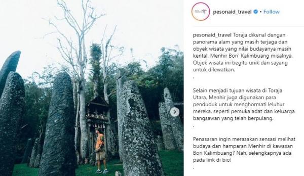 "Toraja dikenal dengan panorama alam yang masih terjaga dan objek wisata yang nilai budayanya masih kental. Menhir Bori’ Kalimbuang misalnya. Objek wisata ini begitu unik dan sayang untuk dilewatkan. Selain menjadi tujuan wisata di Toraja Utara, Menhir juga digunakan para penduduk untuk menghormati leluhur mereka, seperti pemuka adat dan keluarga bangsawan yang telah berpulang. Penasaran ingin merasakan sensasi melihat budaya dan hamparan Menhir di kawasan Bori Kalimbuang?," tulis Instagram @Pesonaid_Travel, dikutip Kamis (22/11/2018).