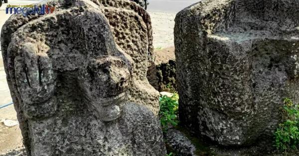 Benda purbakala terbengkalai di pinggir jalan di Kandangan ini diperkirakan telah berusia ribuan tahun. Diduga menggambarkan sosok para dewa.