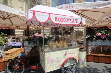 Udara panas menyantap ice cream tentu menggiurkan. Di Moskow, ada ice cream ternama yang sayang jika tidak mencobanya. Sangat melegenda karena sudah lama ada, tidak hanya di Red Square, beberapa lokasi juga bisa ditemui ice cream Bosco. Entah kalau pada musim dingin, jualan es ini masih ada atau tidak, tapi biar bisa mencobanya, berarti harus datang ke Moskow pada musim panas, yakni sekitar Juni–Agustus.