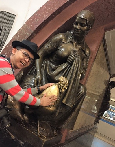 Selain keunikan dari arsitektur bangunan bawah tanahnya, ada hal menarik ditemui di salah satu stasiun Metro Moskow, yakni mitos tentang kepercayaan orang untuk mengusap patung binatang di salah satu stasiun. Diyakini yang mengusap sambil berdoa, harapannya akan terkabul. Tidak heran jika beberapa patung binatang yang terbuat dari logam itu, memang terlihat aus karena banyak diusap penumpang yang berkunjung. Seperti saya, mengusap patung ayam jago. Selain ayam, ada juga patung anjing di stasiun ini.