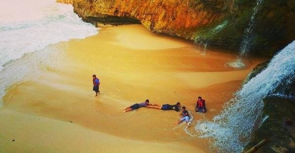 Ya, sesuai dengan namanya, Banyu Tibo, yang berarti air terjun atau air yang jatuh. Para pengunjung pun bisa menikmati guyuran air terjun itu sambil menikmati deburan ombak dan pemandangan yang eksotis milik pantai yang terletak di Desa Widoro, Kecamatan Donorojo, Kabupaten Pacitan, Jawa Timur ini.